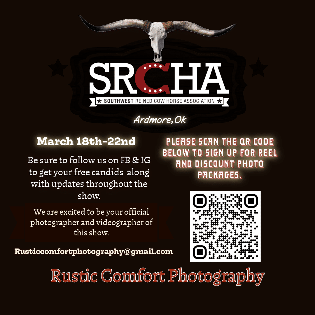 Want a reel made of your March show runs, check out Rustic Comfort Photography. Sign up ahead of time.