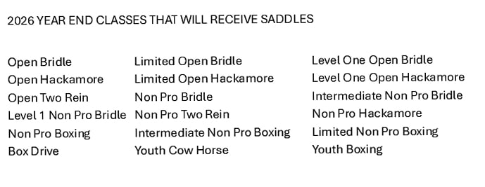 Following is a list of classes that will offer a YEAR-END saddles… Click on photo below to see list.